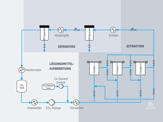 The low critical temperature of 31 °C allows gentle treatment of natural substances. In addition, CO2 is not only readily available, but is also available at relatively low prices.